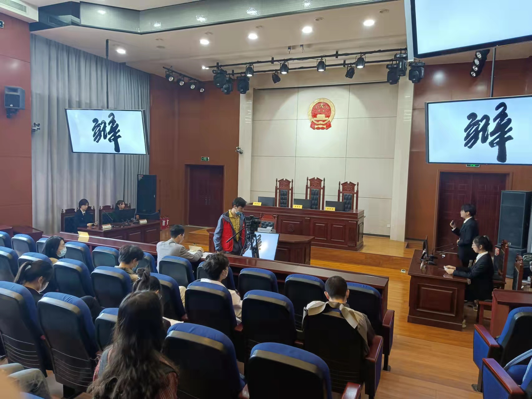 4月10日,河南广播电视台《老马说法》栏目组与我校刑事司法学院、法学实验教学中心合作,在模拟法庭进行节目录制。刑事司法学院、法学实验教学中心负责同志以及学生代表等参加活动。