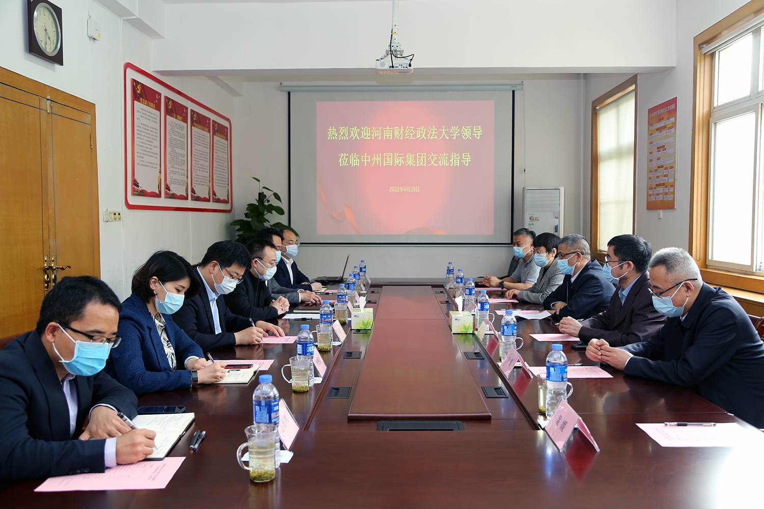 双方在中州国际集团会议室举行座谈交流会。李慧军代表学校向中州国际集团长期以来对学校的支持表示感谢,介绍了本次“访企拓岗促就业专项行动”的背景和意义,并从发展历程、人才培养、办学特色等方面介绍了学校的基本情况。李慧军说,此次走访中州国际集团,目的是充分听取用人单位的意见建议,全面加强与用人单位的沟通交流,持续深化校企合作和产教融合,搭建人才供需对接服务平台。希望校企双方在已有坚实合作的基础上,充分发挥各自的资源和人才技术优势,进一步扩宽渠道、搭建平台、开展合作,把“访企拓岗促就业专项行动”落到实处,为服务地方经济社会发展作出更大贡献。